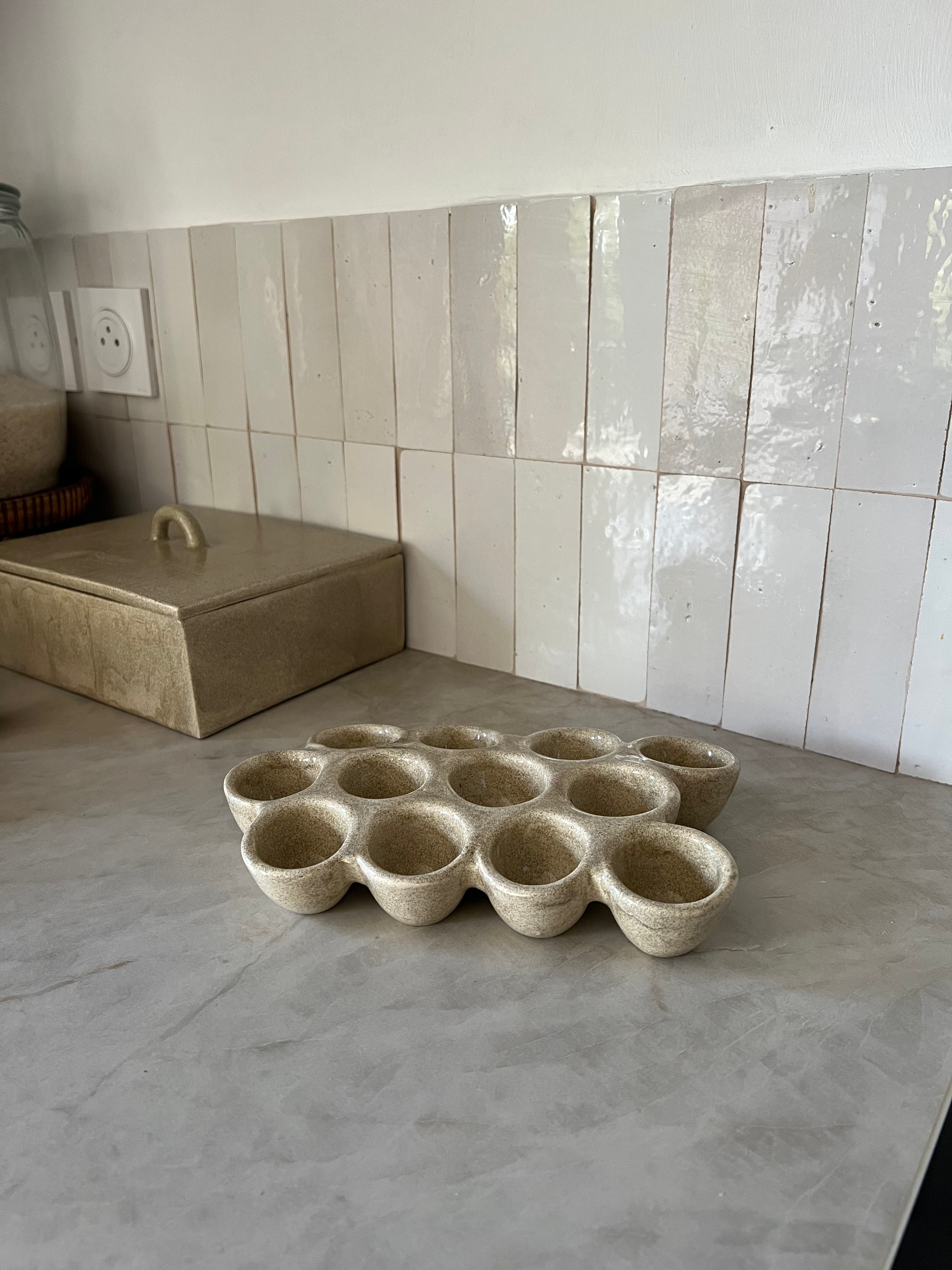 Nos pièces sont réalisées à Marrakech par des maîtres potiers, ébénistes et céramistes, héritiers d'un savoir-faire transmis depuis 1968.