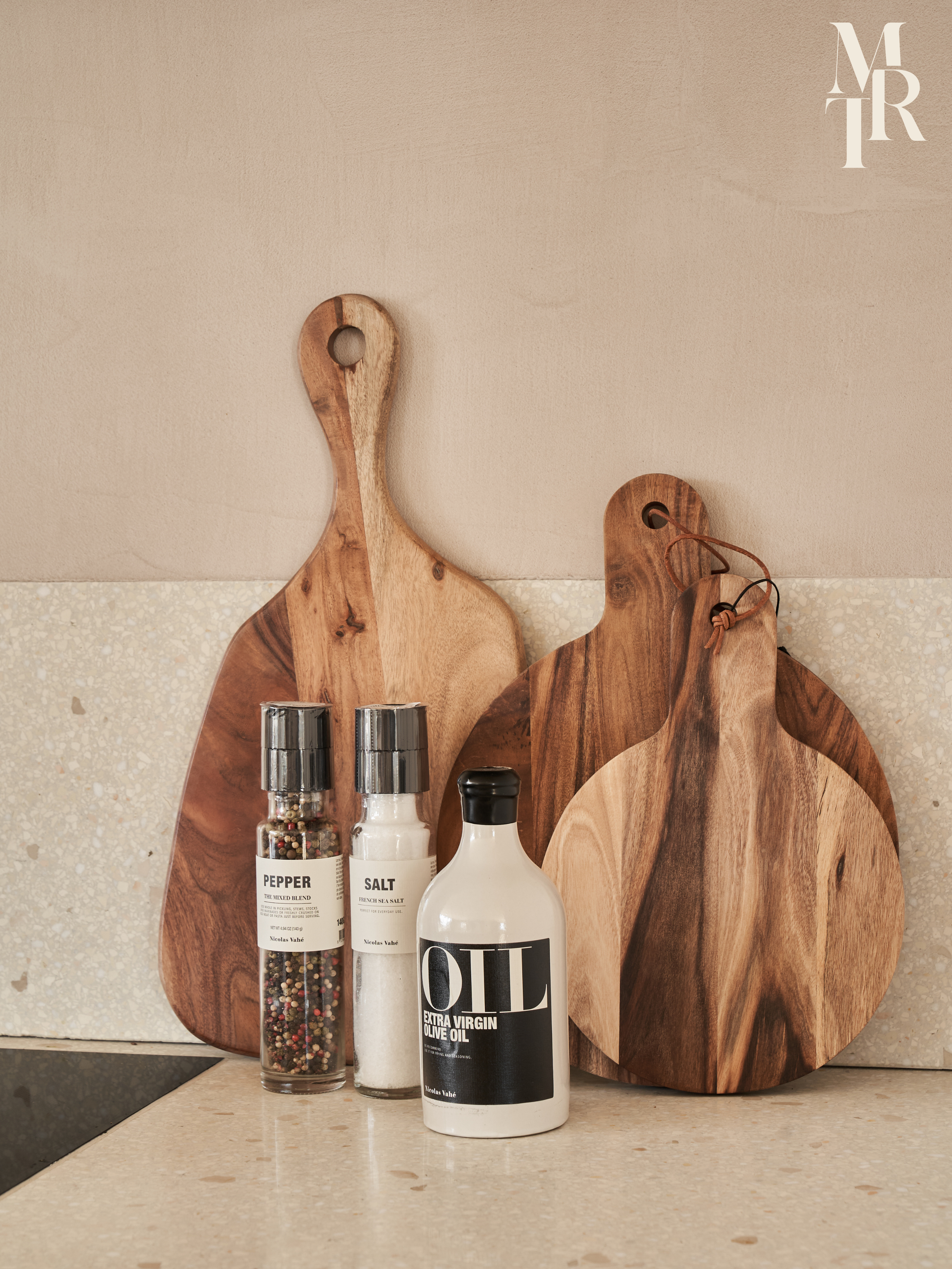 Les packagings des moulins à épices, des bouteilles d'huiles et des condiments de manière générale sont eux aussi des éléments décoratifs quand on les choisi bien !