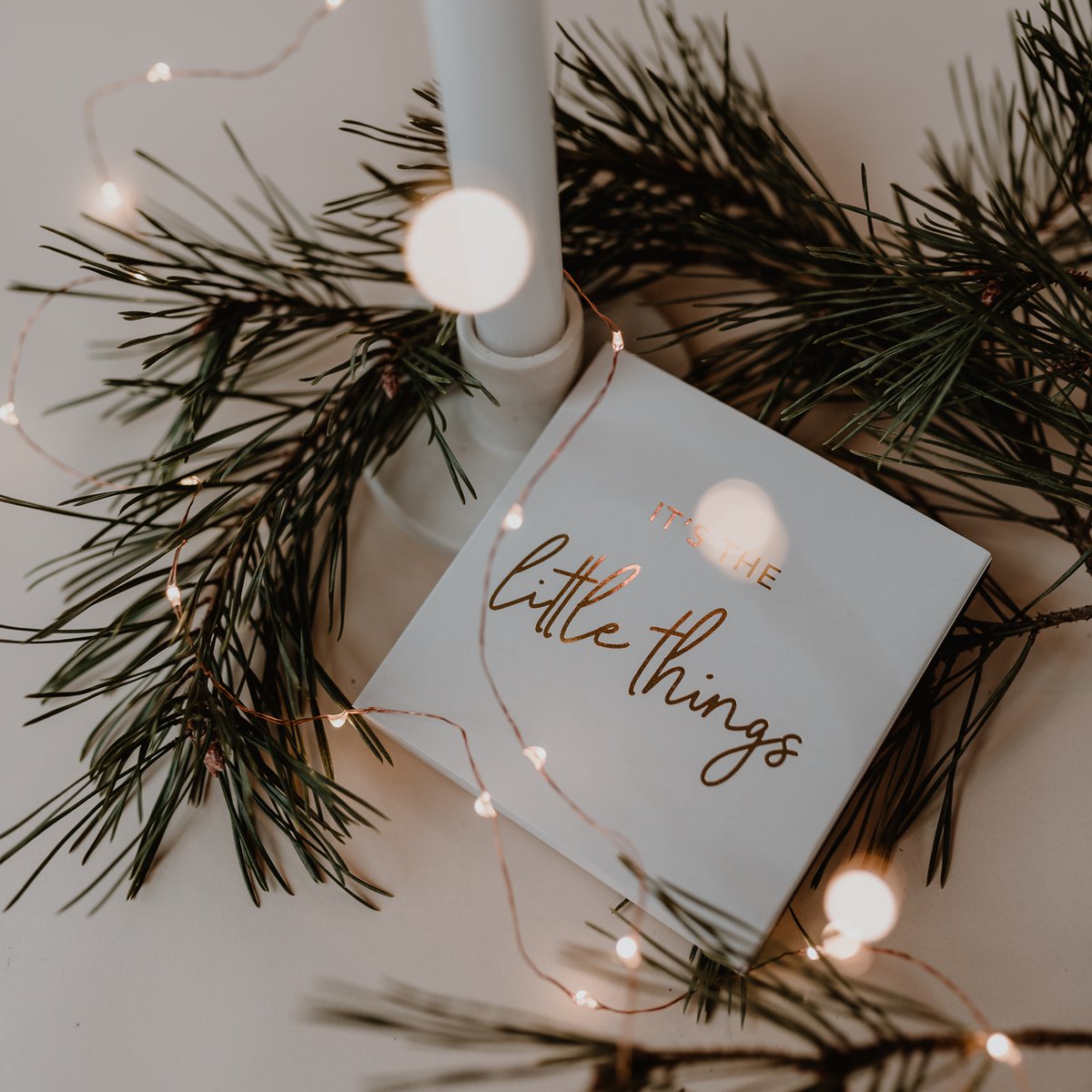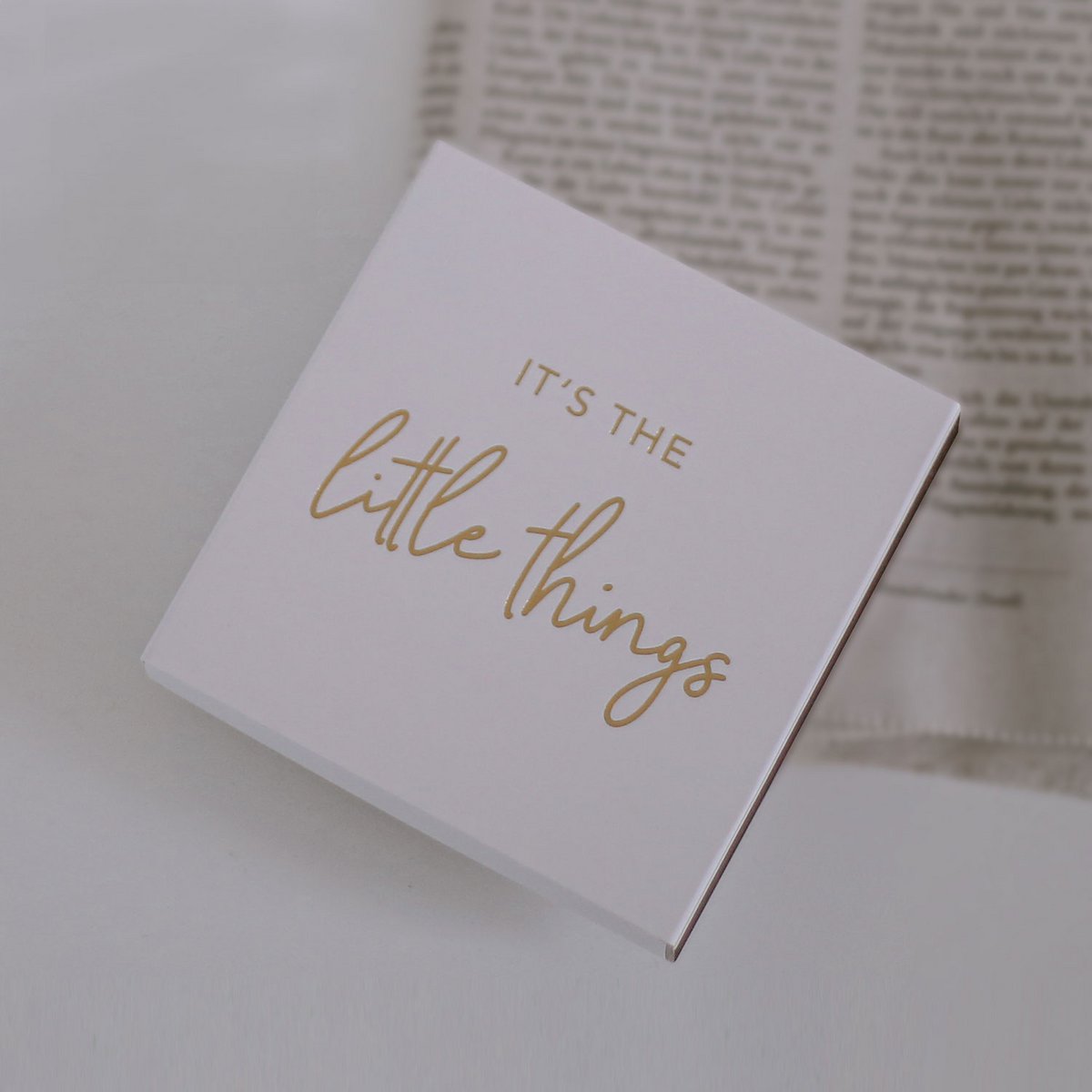 Apporte une touche de douceur et d'élégance à ton coin bougies avec cette boîte d'allumettes ornée du message doré "It's the little things" accompagné d’un joli cœur doré à l'arrière.