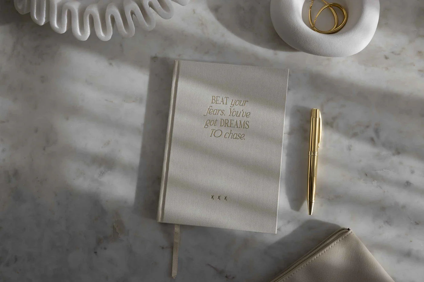 Carnet "Dream Chaser", beige/or, couverture en lin