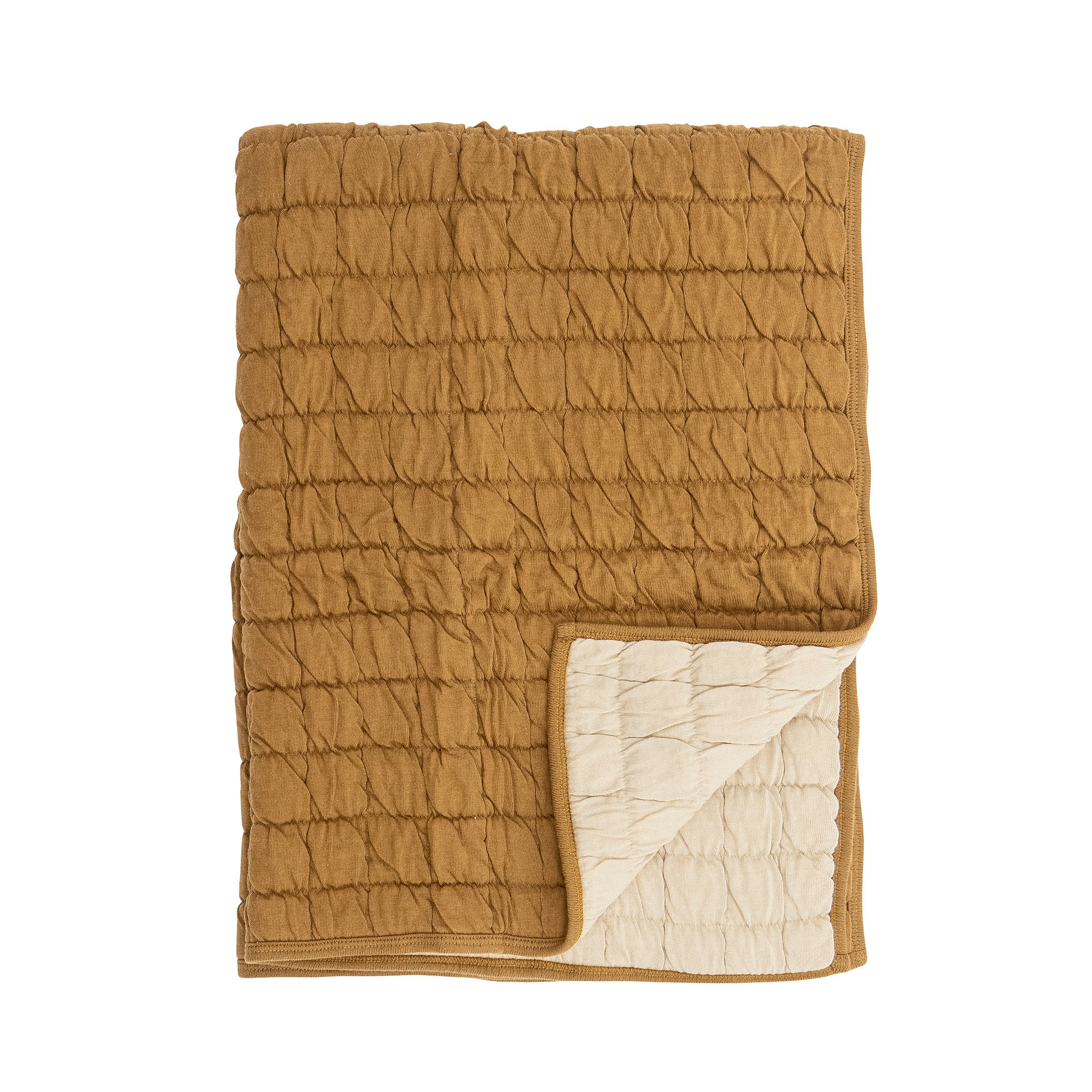 La couverture est marron d'un côté et beige clair de l'autre, pour une déco douce et chaleureuse.