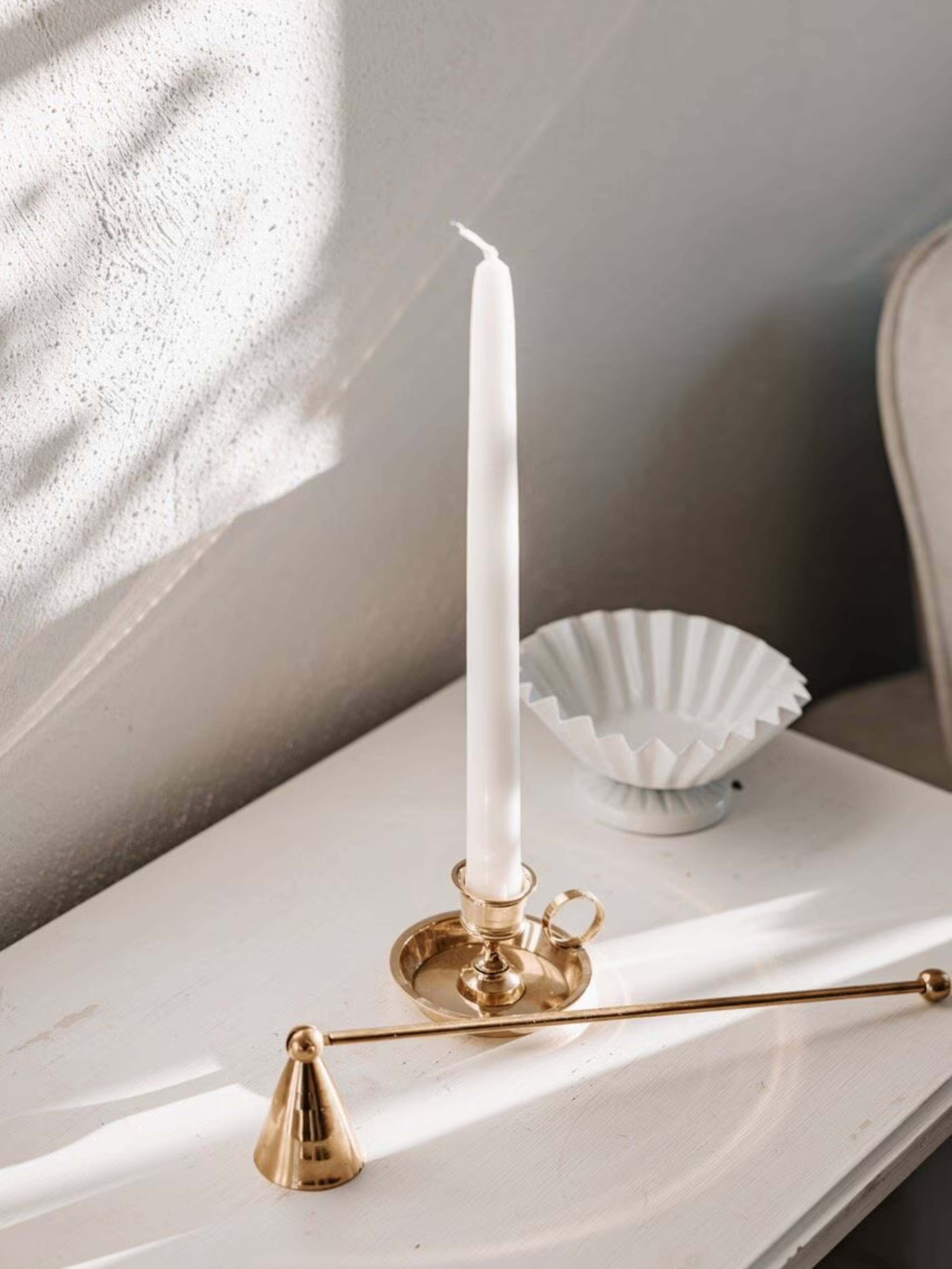 Fais de chaque instant avec tes bougies un moment encore plus raffiné grâce à cet éteignoir à bougie en laiton doré. À la fois pratique et esthétique, cet accessoire deviendra un véritable allié déco qui allie fonctionnalité et élégance.