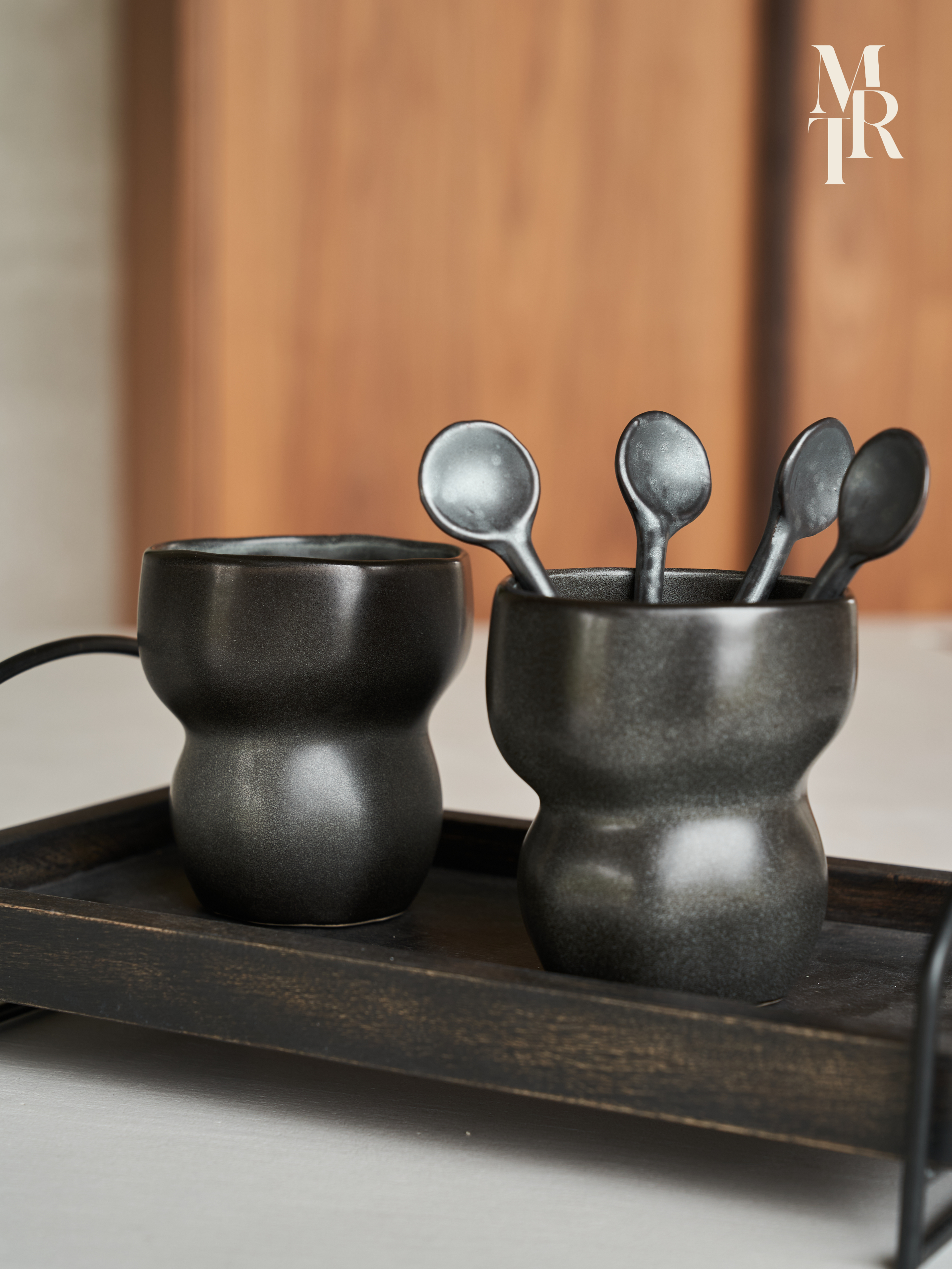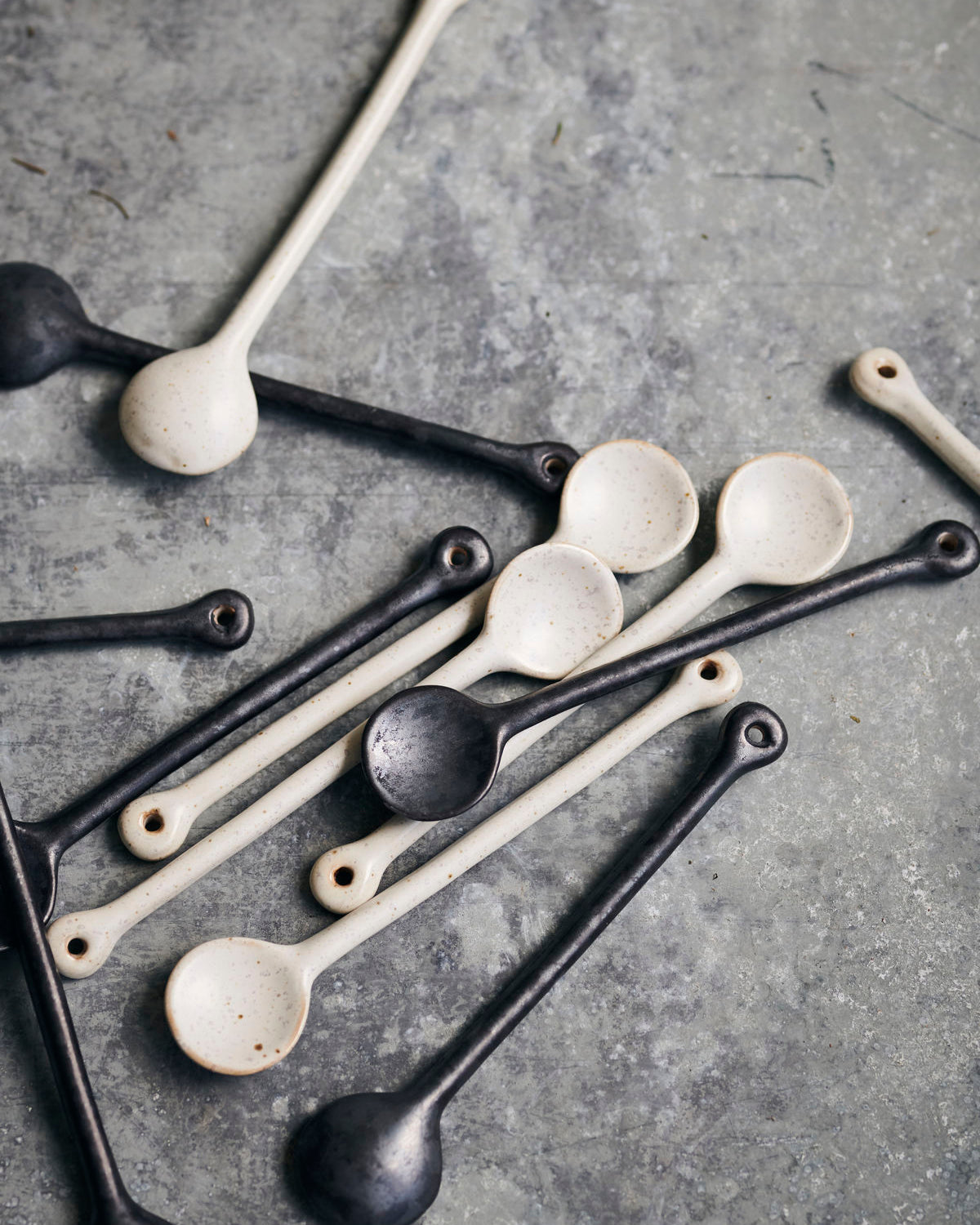 Cette cuillère en grès noir a de fines mouchetures qui lui confère un aspect rustique et authentique.