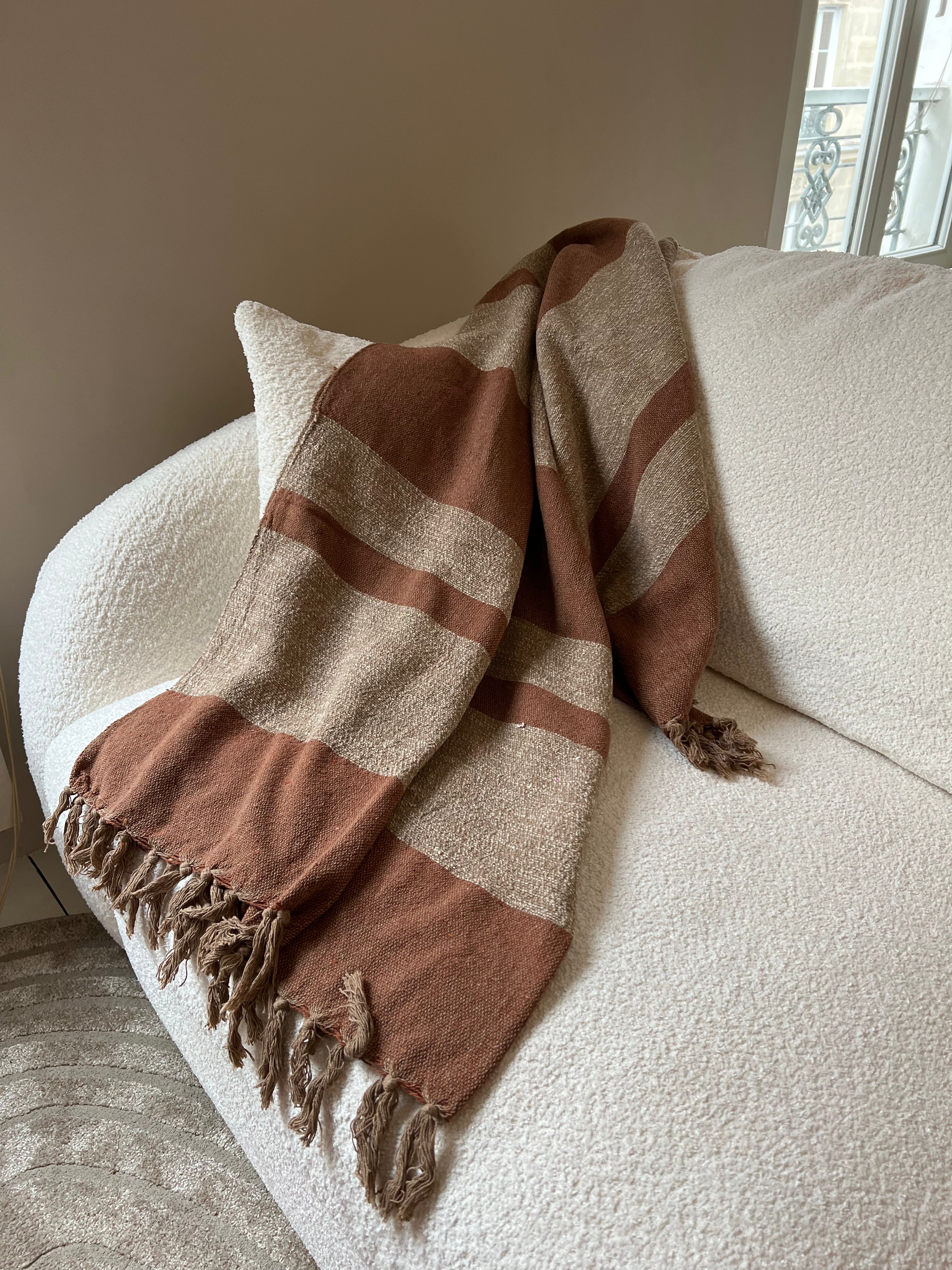 Notre plaid est parfait pour cela ! Non seulement il te tiendra bien chaud cet hiver, mais en plus, ses jolis motifs terracotta et crème en feront un élément de déco parfait à poser sur le bord de ton canapé ou de ton lit.