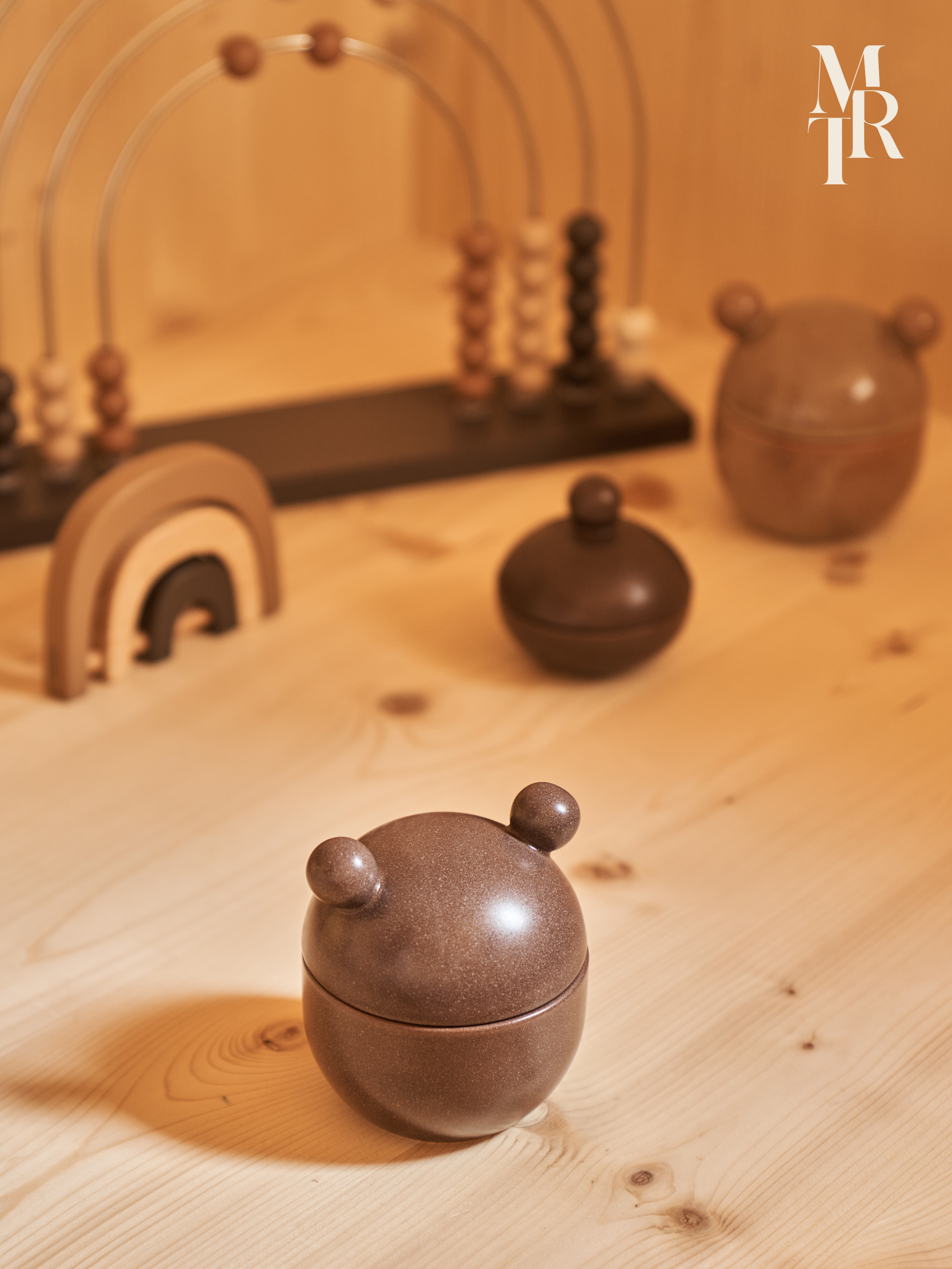 Les petits pots décoratifs en grès sont parfaits pour décorer les étagères ou la commode d'une chambre d'enfant.