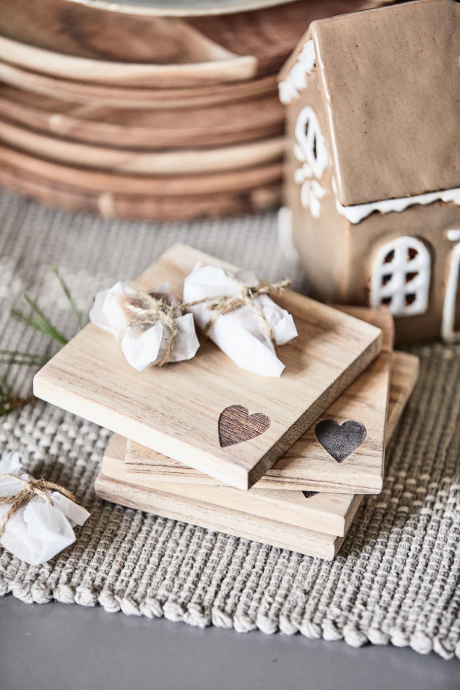 Des sous-verres en bois d'acacia pour poser les boissons, quelle jolie manière de protéger sa table !