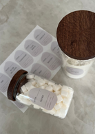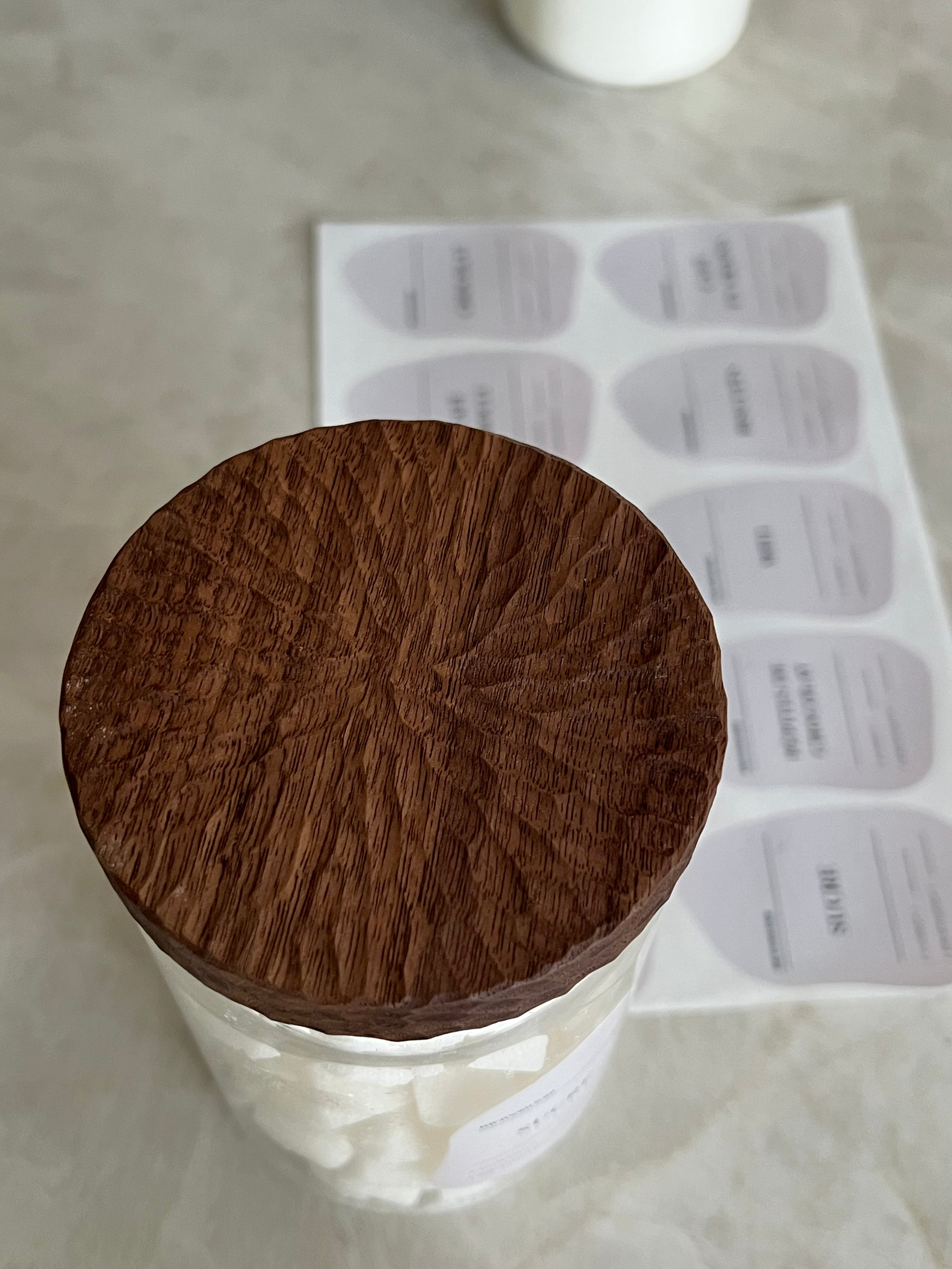 Bocal en verre avec couvercle en bois martelé main [LOT DE 4 + ÉTIQUETTES EFFAÇABLES OFFERTES]