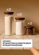 Le couvercle en bois assure-t-il une fermeture hermétique ? Le couvercle offre une fermeture stable, hermétique et protectrice parfaite pour les aliments secs grâce à son joint en caoutchouc. Il protège efficacement vos denrées de l'humidité ambiante et des odeurs extérieures, ce qui est amplement suffisant pour la conservation quotidienne de céréales, pâtes, riz et autres ingrédients secs.
