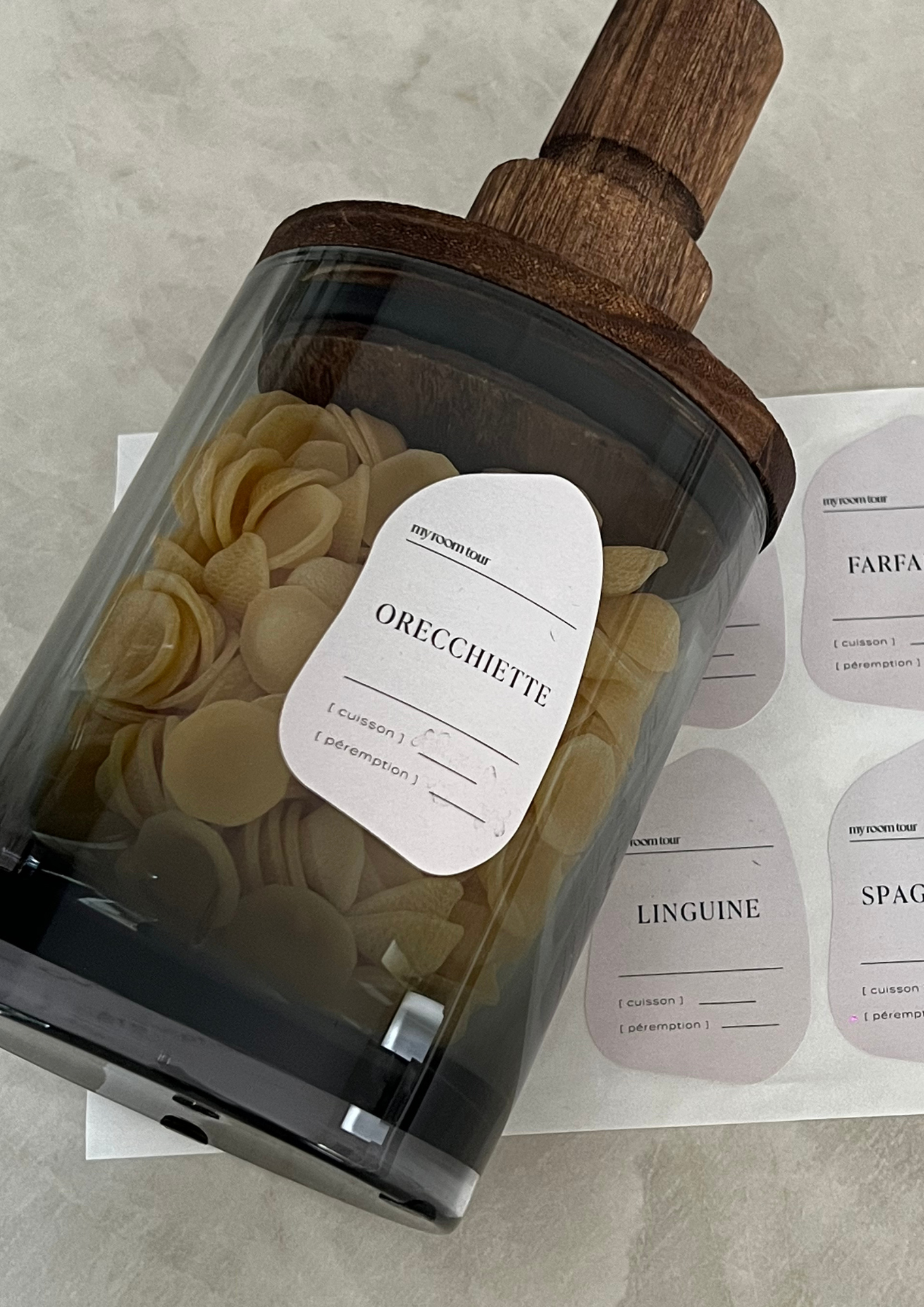 Une résistance à l'eau et au gras qui change tout Conçues pour résister aux conditions réelles d'une cuisine active, ces étiquettes waterproof ne craignent ni les éclaboussures, ni l'humidité ambiante, ni les projections grasses. Vos inscriptions restent parfaitement lisibles même après des mois d'utilisation quotidienne. Vous pouvez même nettoyer vos bocaux sans inquiétude : l'étiquette résiste.
