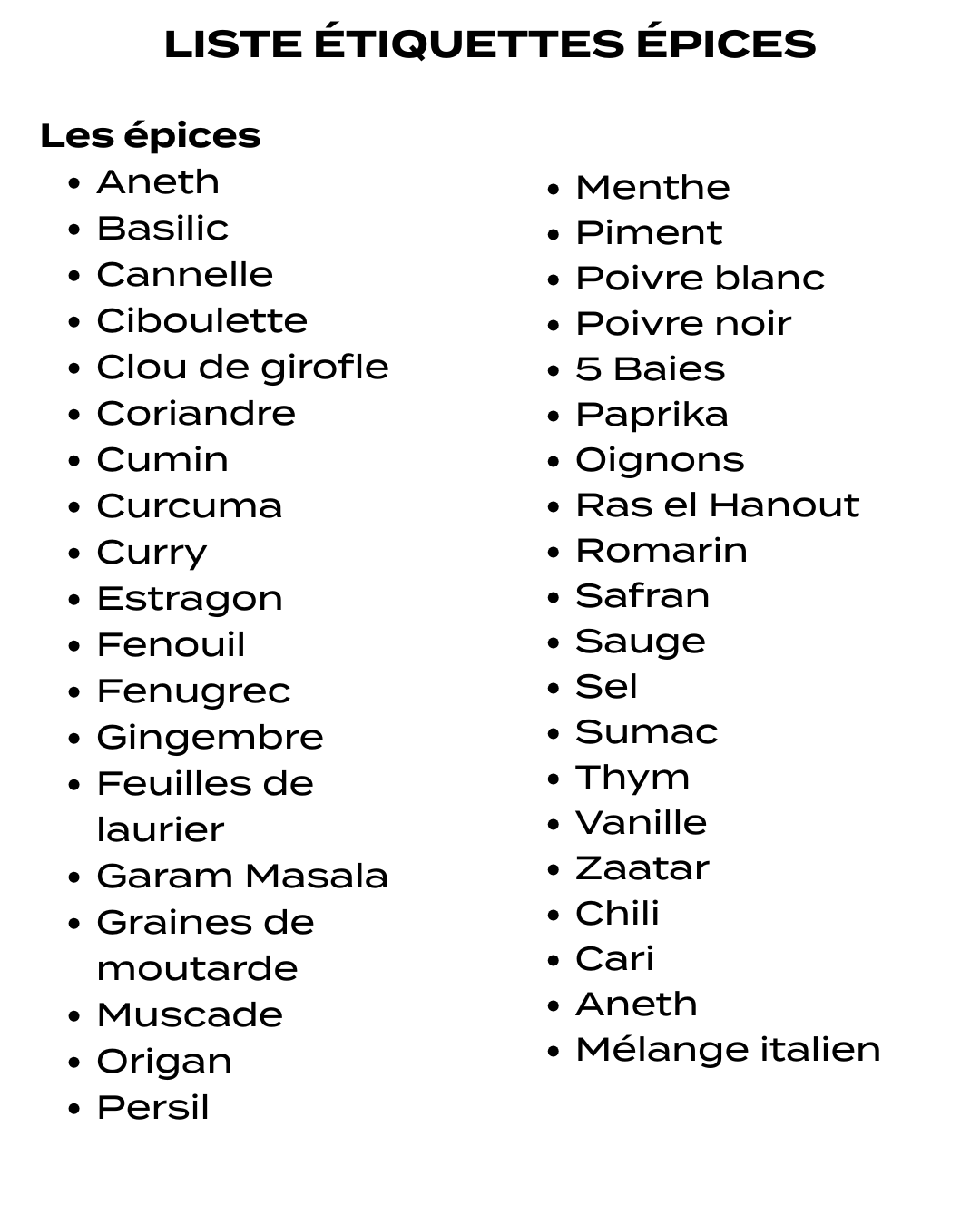 Combien d'étiquettes reçoit-on par planche ? Chaque planche contient plusieurs étiquettes de chaque format, permettant d'étiqueter un ensemble complet de pots d'épices et de bocaux. Le nombre exact varie selon le format, optimisant l'utilisation du support tout en évitant le gaspillage.