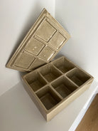 Transformez votre quotidien avec cette boîte compartimentée qui allie esthétique raffinée et polyvalence remarquable. Pensée initialement pour sublimer le rituel du thé, elle s'adapte à mille usages selon vos besoins : rangement d'épices en cuisine, organisation de votre matériel de couture, conservation de vos bonbons préférés ou de vos capsules de café. Chaque ouverture révèle un intérieur parfaitement organisé où chaque compartiment accueille vos petits trésors du quotidien avec élégance.