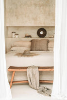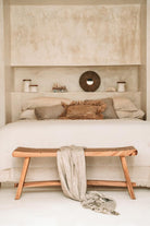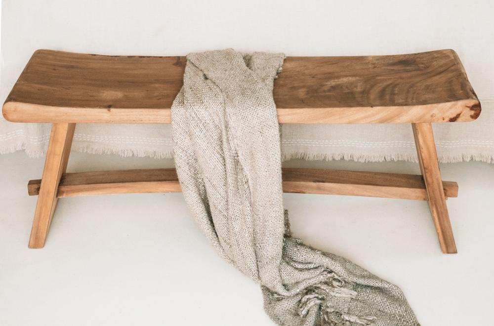 Banc en bois de Suar, parfait lorsqu'il est utilisé comme siège pour manger, dans le couloir ou la salle de bain ou encore sur une terrasse couverte. On ne se lasse jamais de ce style californien !