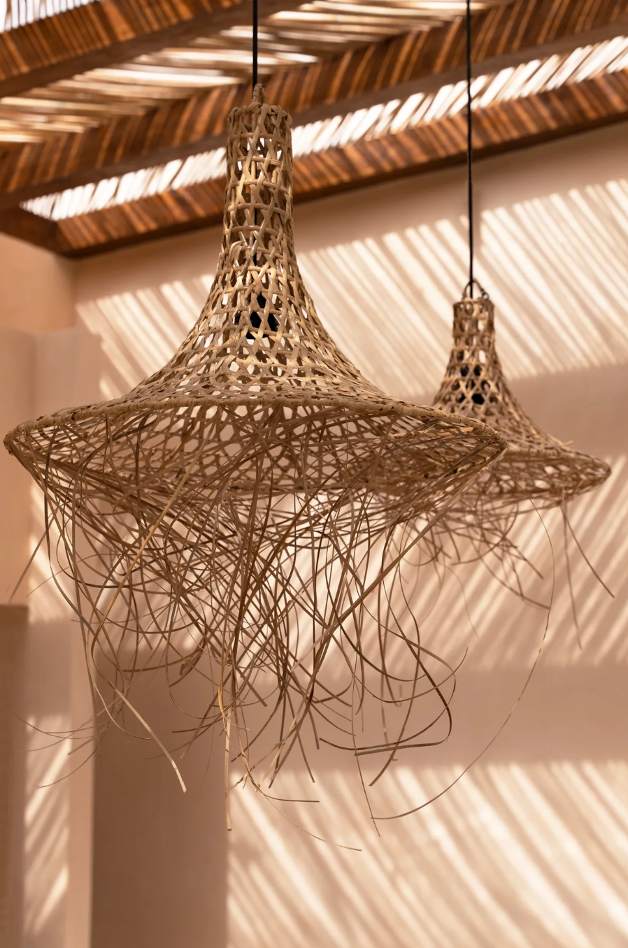 Cette élégante suspension bohème en rotin naturel fera un magnifique luminaire pour une chambre à coucher, une chambre d'enfant, un espace de vie ou un espace extérieur couvert.