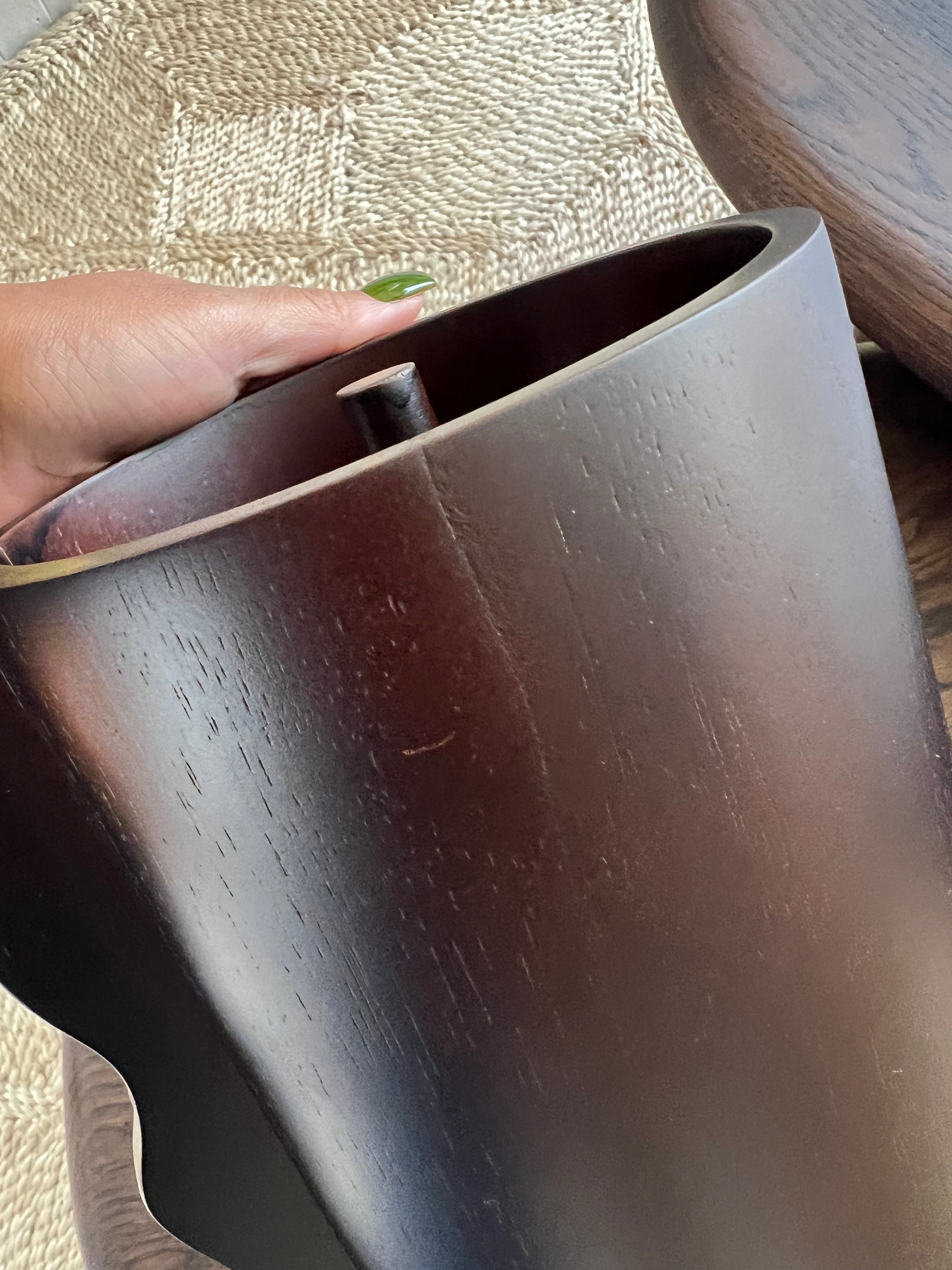 Un simple dépoussiérage régulier avec un chiffon doux suffit à préserver sa beauté. En cas de tache, utilisez un chiffon légèrement humide puis séchez immédiatement. Évitez les produits abrasifs qui pourraient altérer la finition chocolat.