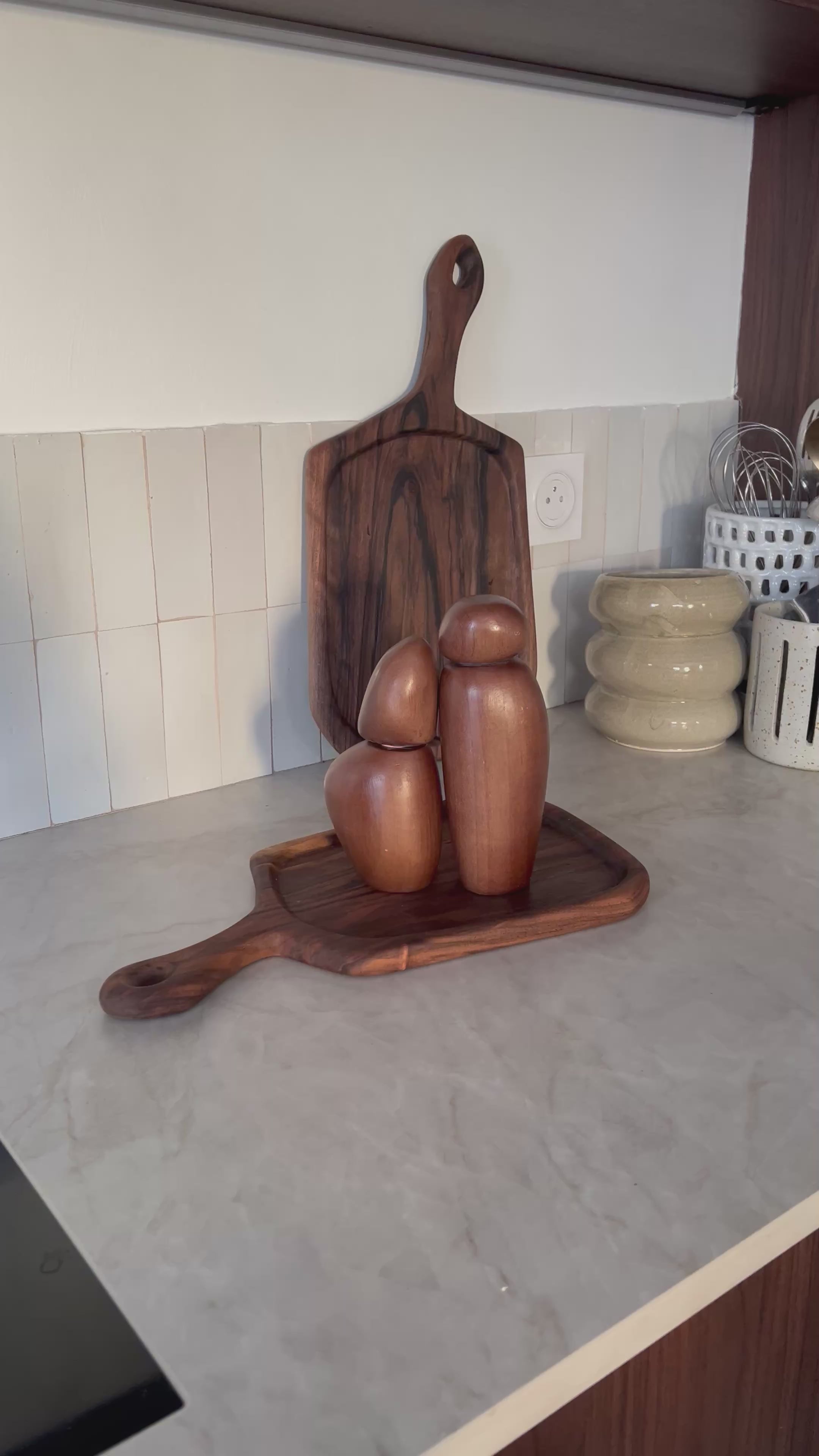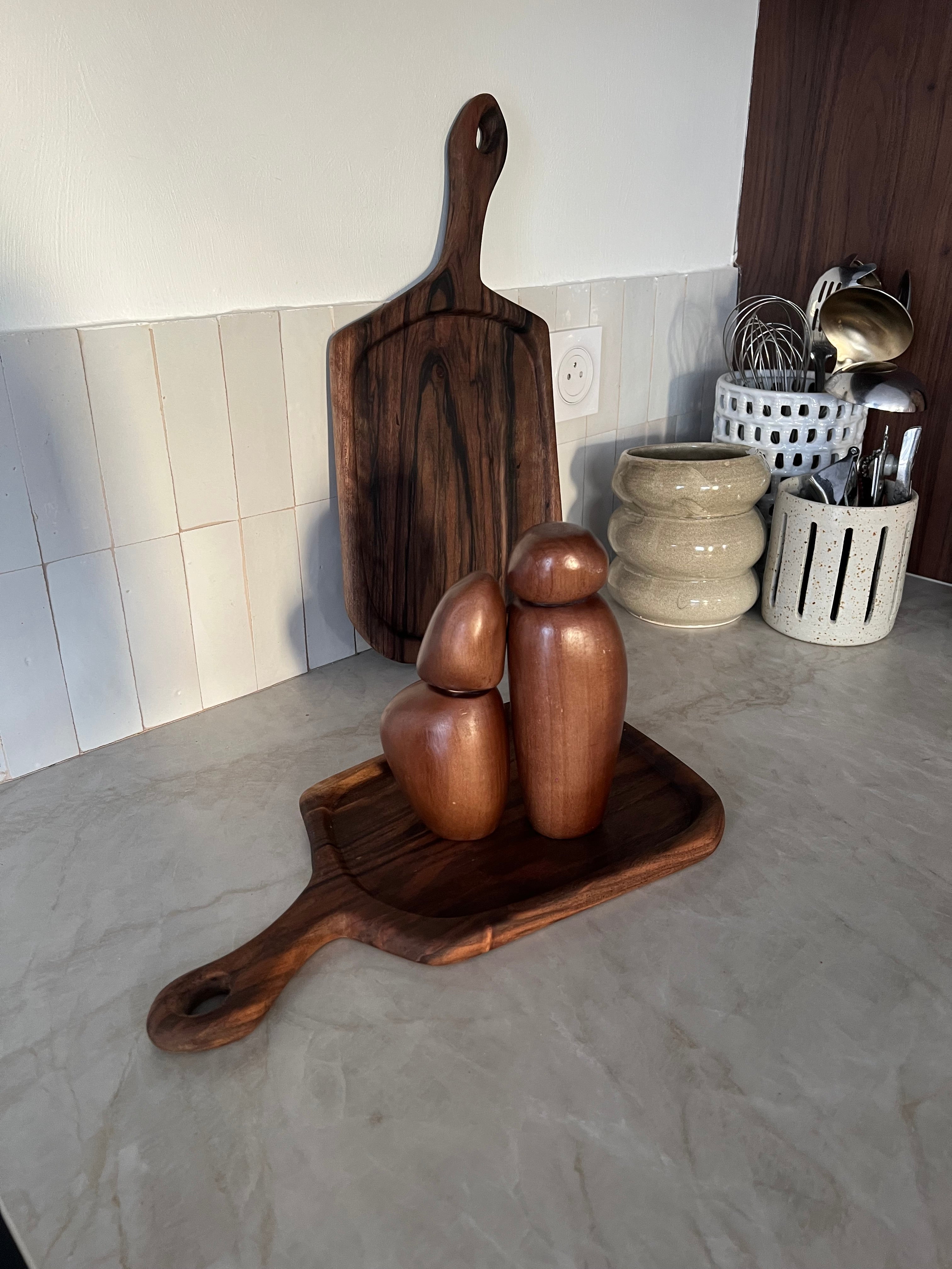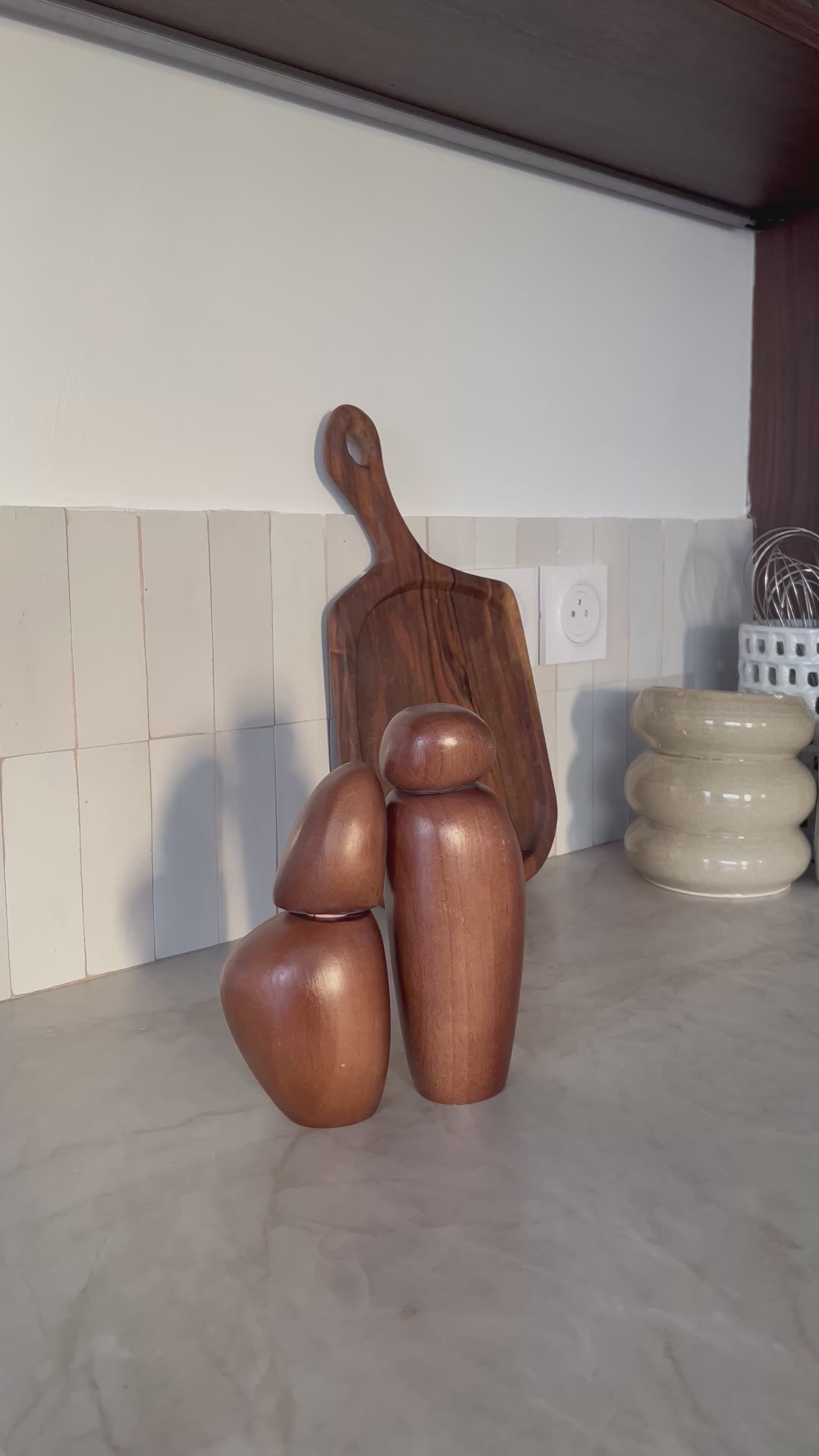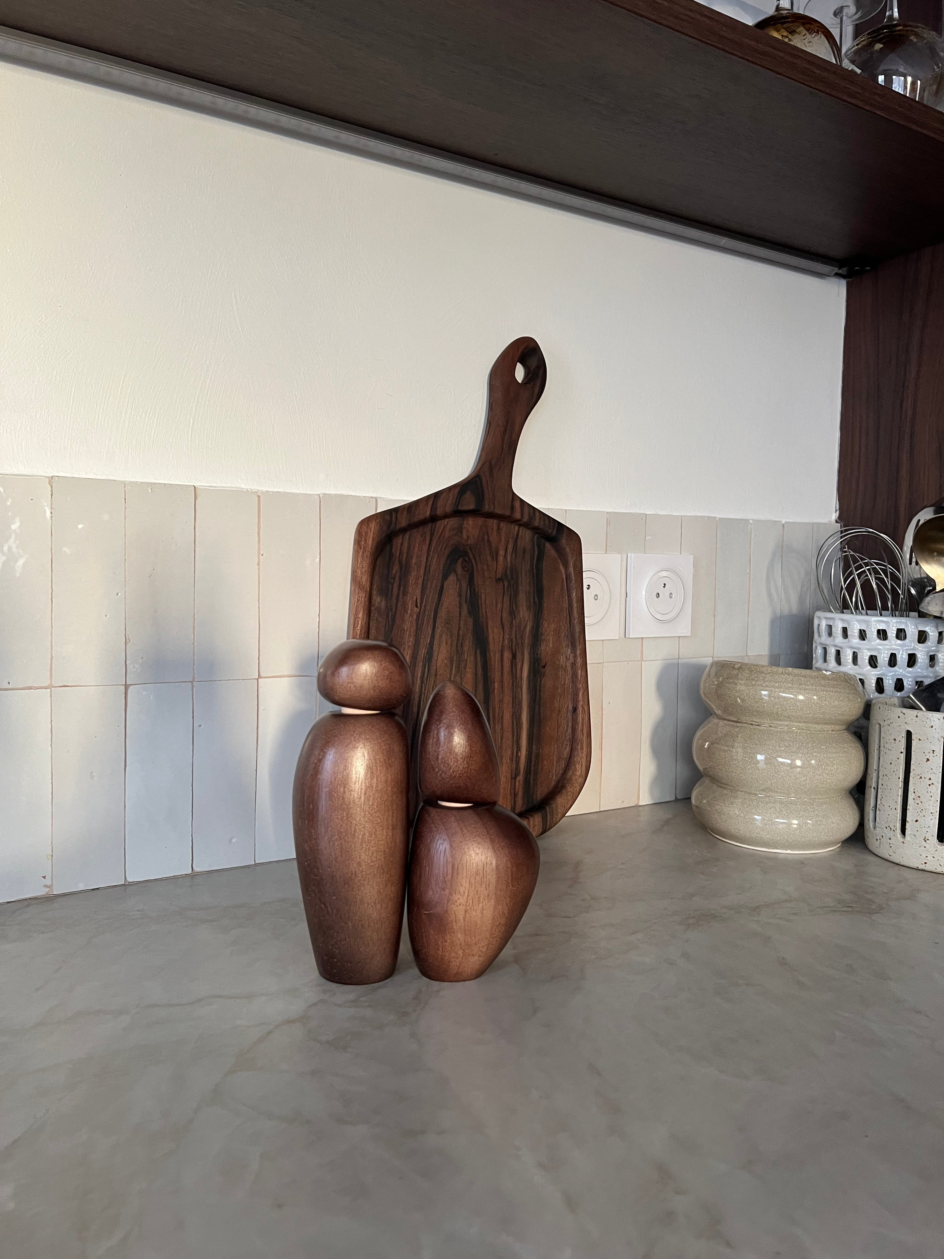 Ces moulins s'adaptent-ils à tous les styles de décoration ? Absolument. La teinte chocolat et les formes organiques de THE PAIR possèdent cette qualité rare de s'intégrer naturellement dans des univers variés. Qu'il s'agisse d'une cuisine moderne minimaliste, d'une salle à manger rustique chic ou d'un intérieur bohème, ce duo trouve sa place avec élégance et apporte une touche d'authenticité artisanale.